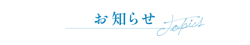 | 2025年12月3日 | 【冬季休暇のお知らせ】 2025年12月27日(土)から2026年1月4日(日)まで冬季休暇とさせていただきます。 (12月26日(金)は午前中のみ営業いたします) |