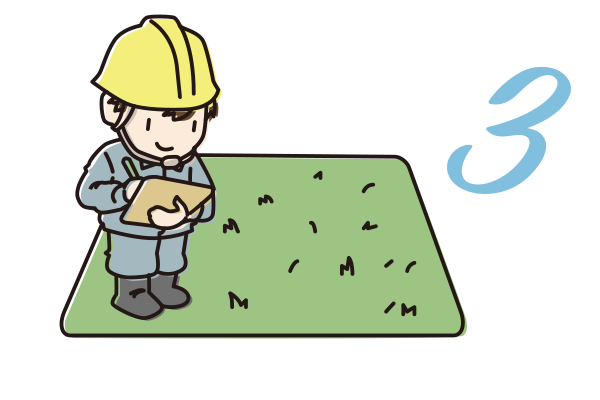 現地で測量を行う前に、隣接地の所有者へ測量を行うという説明を行い、ご理解をお願いします。境界確定をするうえで、ご依頼主さまとすべての隣接地の所有者様双方のご理解が必要となります。